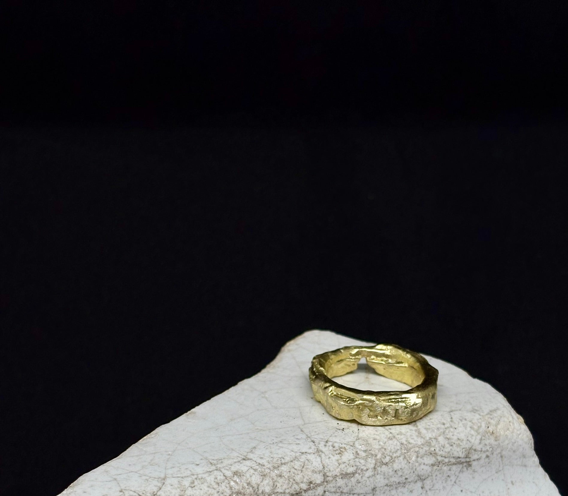 A one-of-a-kind brass band, made using traditional sand casting techniques. The process leaves behind beautifully raw, organic textures that make each piece completely unique. While this exact ring won’t be repeated, a similar style can be made to order in any size — just get in touch to discuss your perfect fit.